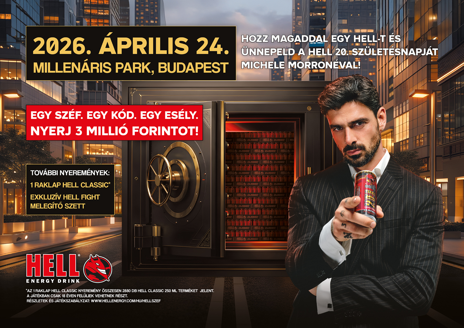 Kiemelt jubileumi eseménnyel ünnepli 20. születésnapját a HELL 2026. április 24-én a Millenáris Parkban. A nagyszabású rendezvényen Michele Morrone is részt vesz, sor kerül a HELL Perfect Store díjak átadására, a közönséget pedig egy különleges széfjáték várja, ahol a főnyeremény 3 millió forint, 1 raklap HELL és egy teljes HELL Fight prémium melegítőszett.